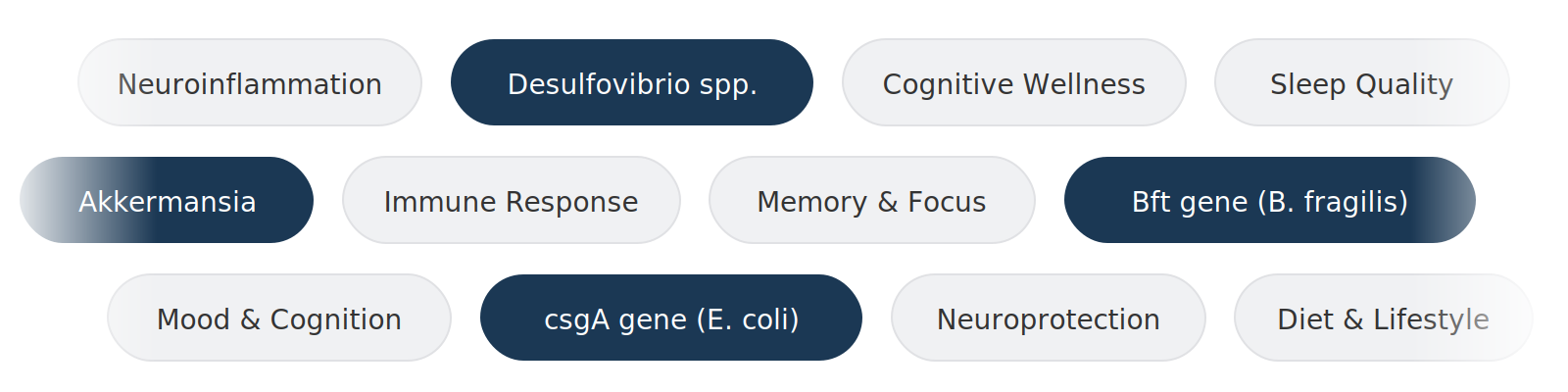 Other microbiome tests cast a wide net. Ours goes deep on factors related to brain health.